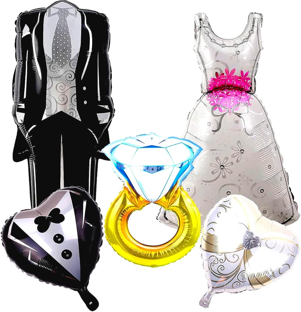 5Pcs Bride & Groom Foil Balloon Set – Wedding Party Decoration Balloons with Ring & Heart Foil Balloons |