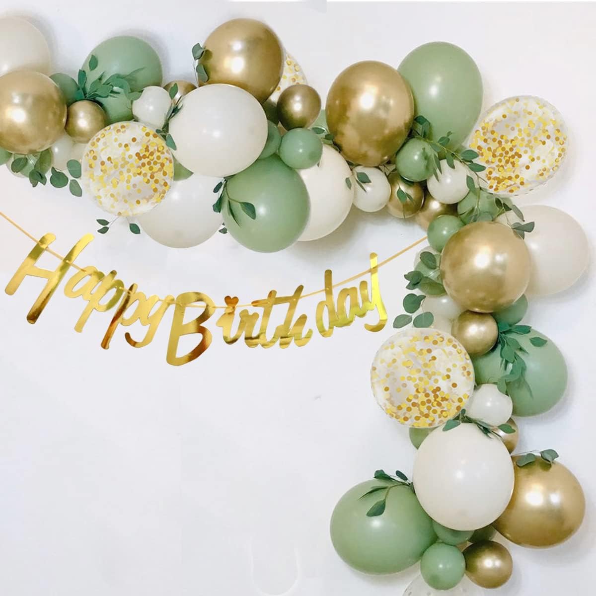 51Pcs Birthday Decoration Set – Green, White & Golden Balloons with Happy Birthday Banner – Party Decoration for Birthday, Wedding, Baby Shower & Events