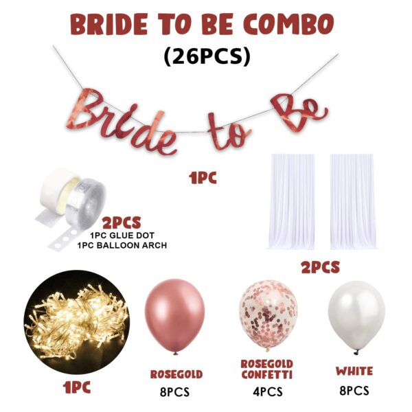 Celebrate the bride in style with this 26Pcs Bridal Shower Decoration Kit ✨. Includes balloons, shimmering rose gold Bride To Be banner, fairy lights, and net curtains for a perfect backdrop. Ideal for bachelorette and engagement parties.