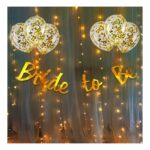 26Pcs Bridal Shower Decoration Kit – Rose Gold & White Balloons, Bride To Be Banner, LED Fairy Light, Net Curtains & Confetti Balloons – Bachelorette Party Decor
