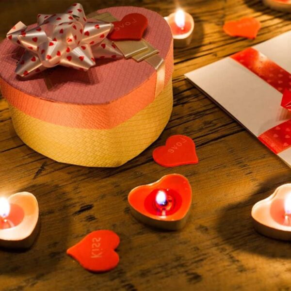 50Pcs Heart Shape Tea Light Candles – Romantic Red Candles for Wedding, Dinner, Valentine’s Day & Home Decoration