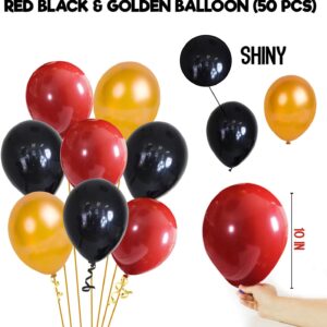 54Pcs Anniversary Decoration Set – Black, Golden & Red Balloons, Happy Anniversary Banner, Golden Fairy Light, Arch & Glue – Romantic Anniversary Party Decoration