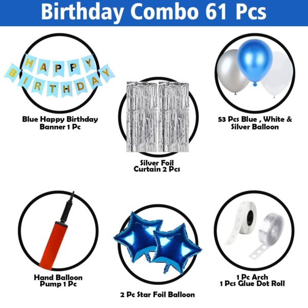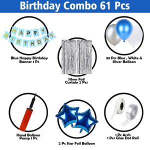 Blue & Silver Birthday Decoration Kit – 60 Pcs Party Set with Balloons, Banner & More
