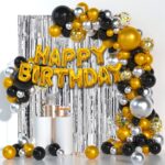 41pcs Happy Birthday Decoration Set – 40 Black & Gold Balloons + 1 Banner | Party Decor for Men, Women, Adults & Teens