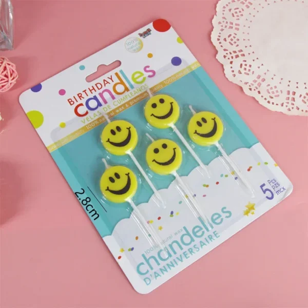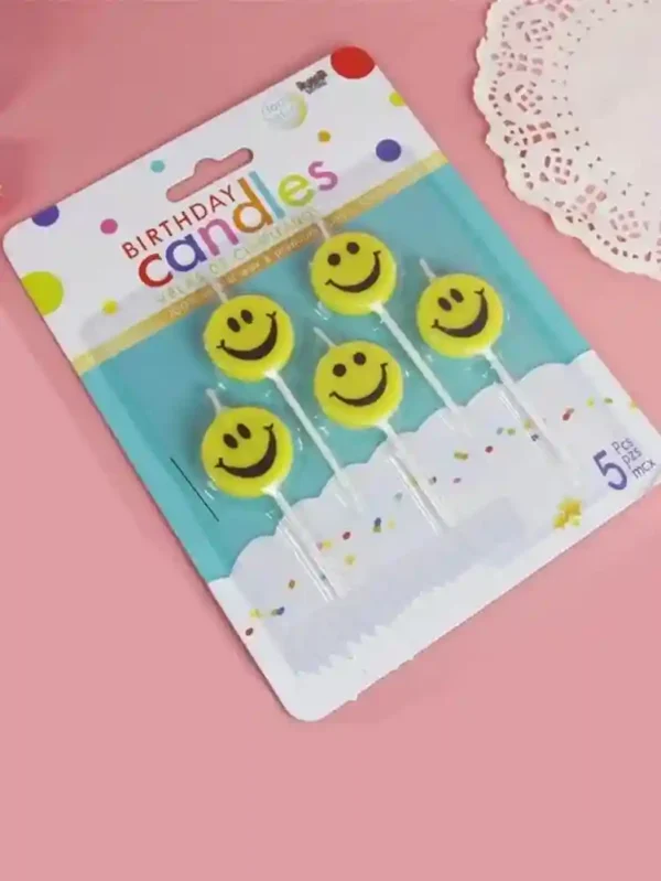 Add joy to your celebration with these Emoji Smiley Face Scented Candles – a pack of 5 colorful and fun candles, ideal for kids’ birthdays, party decorations, and home décor.
