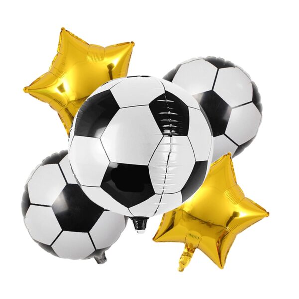Football Theme Foil Balloons Set – 5Pcs Party Decoration | 3 Football Balloons & 2 Golden Star Balloons
