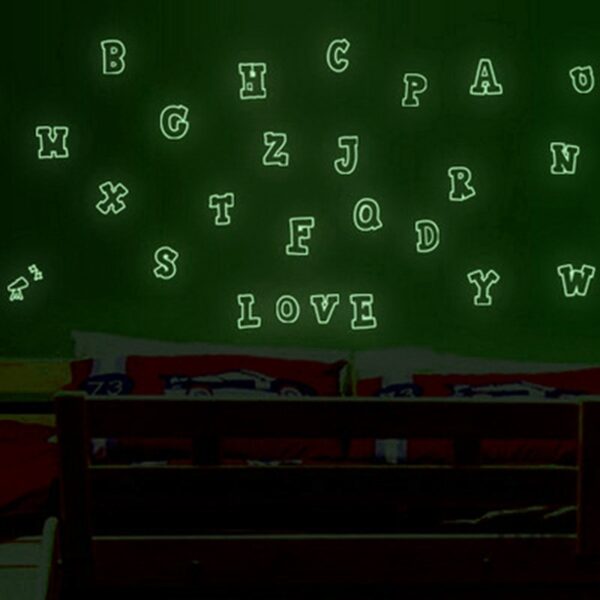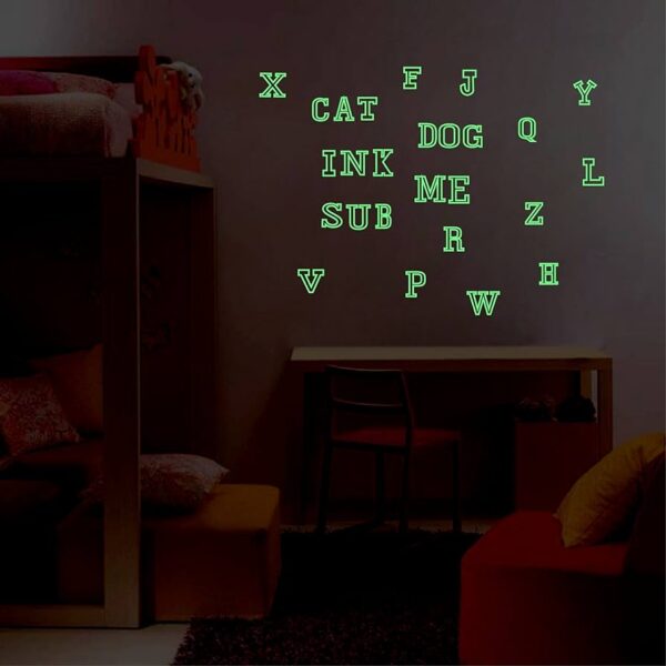 Glow-in-the-dark alphabet letters for kids’ nursery, bedroom, ceiling, or wall décor – safe, sticky, and fun way to learn while decorating. A perfect gift for boys and girls.