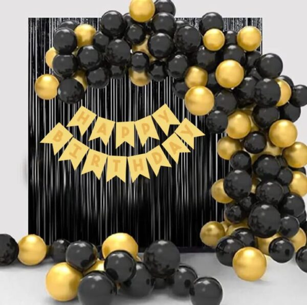 Tags: #BirthdayDecorationSet, #BirthdayDecorForGirls, #BlackAndGoldTheme, #HappyBirthdayBanner, BirthdayBalloonSet #HappyBirthdayBanner