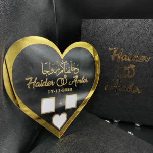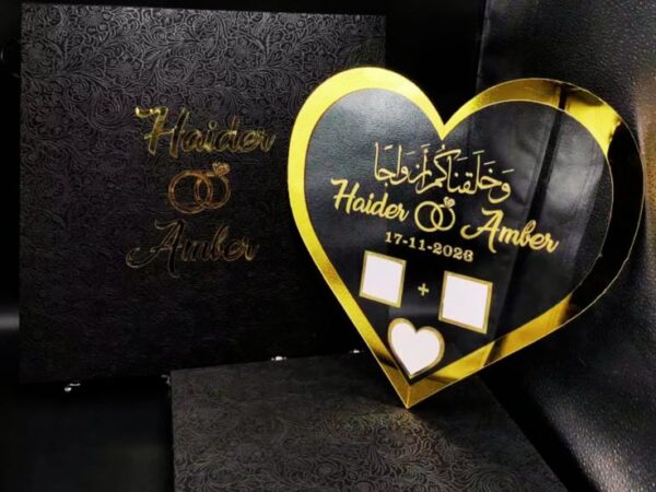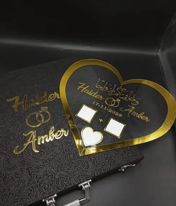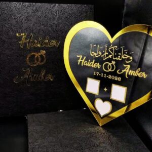The board also includes a custom name box where you can personalize it with the couple’s names or date, making it a perfect gift for Nikkah, anniversaries, engagements, or bridal showers. Its transparent, glossy acrylic finish ensures long-lasting elegance and makes it easy to display as part of your home decor.
