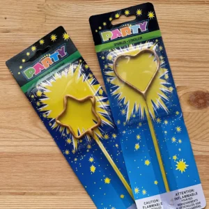 Celebrate in style with these Heart & Star Sparkle Candles – a pack of 1 heart-shaped and 1 star-shaped sparklers, perfect for birthday cakes, parties, and celebration moments.