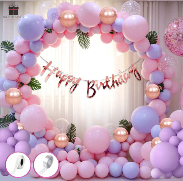 Rose Gold, Purple & Pink Birthday Decor Kit – Banner, Balloons, Arch Strip & Glue Dots