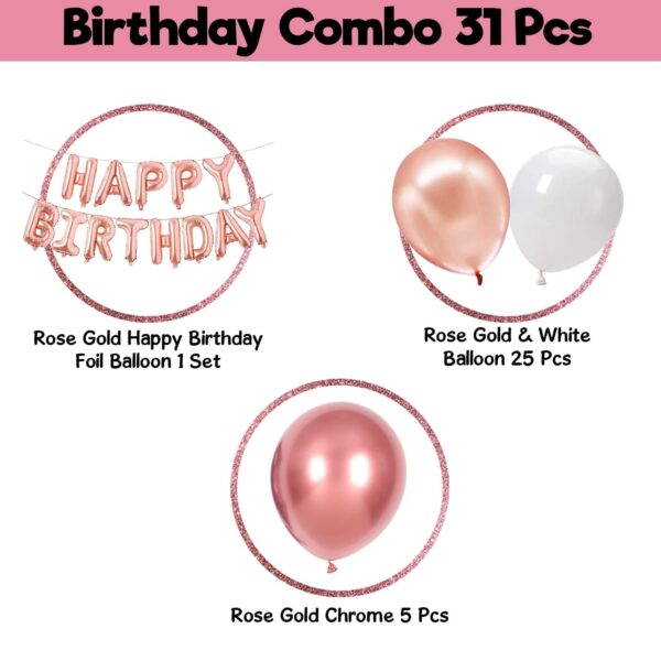 Rose Gold & White Birthday Party Decoration Set – 31 Pcs Elegant Balloon & Banner Kit