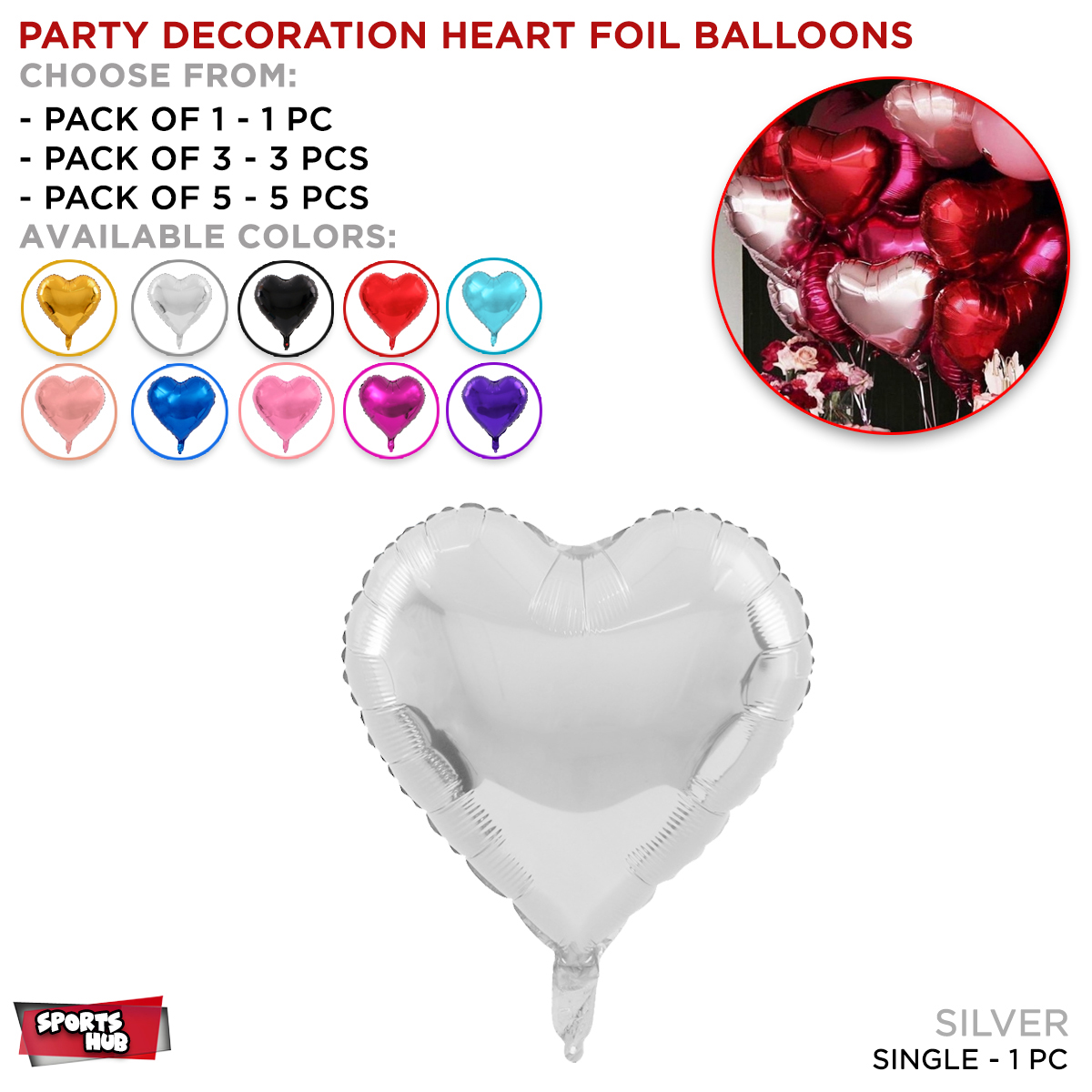 1Pc Heart Foil Balloon (18 Inches) – Red, Silver, Gold, Blue | For Birthday, Wedding, Baby Shower & Events