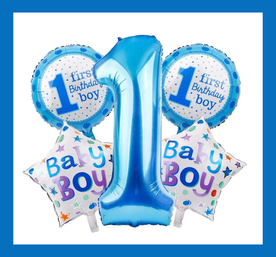 1st Birthday Blue Foil Balloon Set – Pack of 5 Party Balloons for Baby Boys